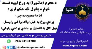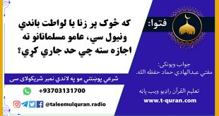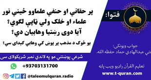 جواب ويونکی: مفتي عبدالهادي حماد د تعلیم القرآن راډیو یوټیوب چینل دلته کتلای سی: دا هم ولولی: د کوروالی یا جماع کولو شرعي طریقه!