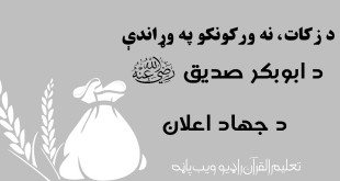 د زکات، نه ورکونکو په وړاندې د ابوبکر صدیق رضی الله عنه د جهاد اعلان ابن عمر رضی الله عنه وايي: پیغمبر صلی الله علیه وسلم چې له دې نړۍ څخه سترګې پټې کړې منافقانو ځانونه ښکاره کړل او د مدینې خواوشا سیمو ځینو خلکو له زکات ورکول نه انکار …