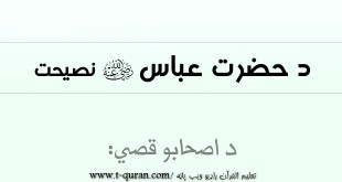 د حضرت عباس رضی الله عنه نصيحت وهب بن منبه رضی الله عنه فرمايي: د حضرت عبدالله بن عباس رضی الله عنه د سترګوديد لمنځه ولاړى يوه ورځ ما کعبې شريفي ته بوتى هلته چي ورسېدئ د يوې ډلي خلګو څخه د جګړې اواز راتلى ماته يي وويل ما …