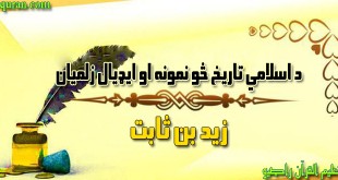 د اسلامي تاریخ څو نمونه او ايډيال زلمیان (5) زید بن ثابت زید بن ثابت رضي الله عنه په دیارلس کلنۍ کې د اسلام خدمت ته وړاندي شواو ځیني روایات وایې چې په یولس کلنۍ کي، او دی یواځنی هغه صحابي دی چې په قرانکریم کې یې نوم راغلی دی: …