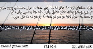 د يو مسلمان د بل مسلمان څخه تر درو ورځو زيات اړيكي شكول جواز نه لري : لاَيَحِلُّ لِمُسْلِمٍ اَنْ يَّهْجُرَ اَخَاهُ فَوْقَ ثَلٰثٍ فَمَنْ هَجَرَ فَوْقَ ثَلٰثٍ فَمَاتَ دَخَلَ النَّارَ ترجمه : هيڅ مسلمان لره دا جائز نه ده چي هغه د خپل مسلمان ورور سره تر درو ورځو …