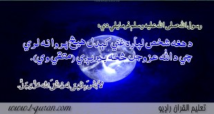 له اور څخه نجات: عن عدي بن حاتم رضي الله عنه قال : قال رسول الله صلى الله عليه وسلم : اتقوا النار ولو بشق تمرة فمن لم يجد فبکلمة طيبة . ( متفق عليه ) ژباړه: له حضرت عدي بن حاتم رضى الله عنه څخه روايت دى ، چي …
