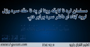 نا لایقه وینا او ناحقه وژل! سَبَابُ المُسلِِمِ فِسقٌ وَّقِتَالُه كُفرٌ (بخاري مسلم) ژباړه: مسلمان لره نا لايقه وينا او په نا حقه سره وژل لويه ګناه او دکفر سره برابر دي.