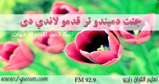 جنت دميندو تر قدمو لاندي دی! َلجَنَّة ُ تَحتَ اَقدَاِم الا ُ مَّهَاتِ (مسلم). ژباړه: جنت دميندو تر قدمو لاندي دی.