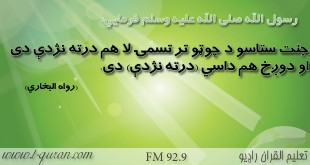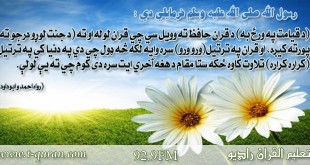د قرانکریم د حافظ درجه (الحدیث) رسول الله صلی الله علیه وسلم فرمايلي دي چي (د قیامت په ورځ به) د قران حافظ ته وویل سي چي قران لوله او ته (د جنت لوړو درجو ته) پورته کيږه، او قران په ترتیل (ورو ورو) سره وايه لکه څه ډول چي …