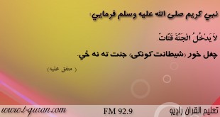 چغل خور جنت ته نه ځي نبي کریم صلی الله علیه وسلم فرمايي: لاَ يَدْخُلُ الْجَنَّةَ قَتَّاتٌ. متفق علیه ژباړه: چغل خور (شیطانت کونکی) جنت ته نه ځي.