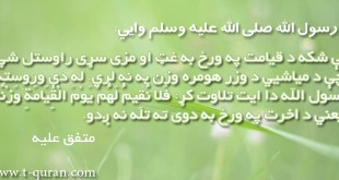 رسول الله صلی الله علیه وسلم وایي: بې شکه د قیامت په ورځ به غټ او مزی سړی راوستل شي چې د مياشيي د وزر هومره وزن به نه لري. له دې وروسته رسول الله دا ایت تلاوت کړ: فَلا نُقِيمُ لَهُمْ يَوْمَ الْقِيَامَةِ وَزْنًا. یعني د اخرت په ورځ …