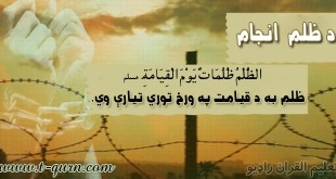 د ظلم انجام نبي اکرم صلی الله علیه وسلم فرمايلي دي: الظُّلْمُ ظُلُمَاتٌ يَوْمَ الْقِيَامَةِ. رواه البخاري ومسلم ژباړه: ظلم به د قیامت په ورځ توري تیارې وي.