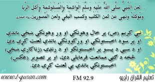 څو ملعون (د الله له رحمته ليري) کسان عَوْنُ بْنُ أَبِي جُحَيْفَةَ عَنْ أَبِيهِ قَالَ لَعَنَ النَّبِيُّ صَلَّى اللَّهُ عَلَيْهِ وَسَلَّمَ الْوَاشِمَةَ وَالْمُسْتَوْشِمَةَ وَآكِلَ الرِّبَا وَمُوكِلَهُ وَنَهَى عَنْ ثَمَنِ الْكَلْبِ وَكَسْبِ الْبَغِيِّ وَلَعَنَ الْمُصَوِّرِينَ. ترجمه: حضرت عون بن ابي جحيفه (رض) د خپل پلار څخه روايت کوي، چي نبي …