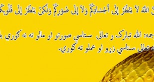 أَفْضَلُ الأَعْمَالِ الْحُبُّ فِى اللَّهِ وَالْبُغْضُ فِى اللَّه (ابوداود) ښه د عملو څخه دا دی چي دوستي هم د الله د پاره وي او دښمني هم د الله د پاره وي.
