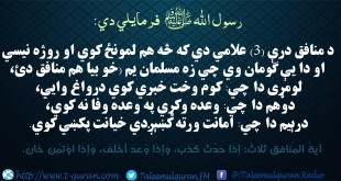 درواغ ویل دمنافق کار دئ! رسول الله صلي الله عليه وسلم فرمايي: د منافق درې (٣) علامي دي كه څه هم لمونځ كوي او روژه نيسى او دا يې گومان وي چي زه مسلمان يم (خو بیا هم منافق دئ، لومړی دا چي:) كوم وخت خبري كوي درواغ وايي، (دوهم …
