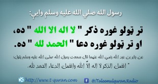 تر ټولو غوره ذکر!(الحدیث) رسول الله صلي الله علیه وسلم وایې: تر ټولو غوره ذکر ” لا اله الا الله ” ده، او تر ټولو غوره دعا ” الحمد لله ” ده. عن جابر بن عبد الله رضي الله عنهما قال سمعت رسول الله صلى الله عليه وسلم يقول: ” …