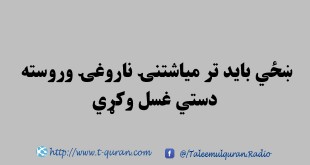 ښځي بايد تر مياشتنۍ ناروغۍ وروسته دستي غسل وکړي په مياشتنۍ ناروغۍ کي حکم دادئ چي کله ښځي ته مياشتنۍ ناروغي پېښه سي تر پېښېدو وروسته دپاکۍ نښانې پکښي ښکاره سي بايد دستي غسل وکړي او دهمدغه وخت لمونځ ادا کړي آن تردې که دومره وخت وو چي ښځي يوازي …