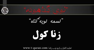 لسمه لويه گناه: زنا كول زنا كول ددنيا او آخرت د سختو تاوانو چینه ده، ځكه طب پوهانو ثابته كړې ده چي زنا كول د لاعلاجه ناروغيو لامل ده. همدا ډول د آخرت سخت عذابونه هم د زنا په وجه وعده سوي دي، ځكه الله( فرمايي: ﴿وَلَا تَقْرَبُوا الزِّنٰٓى اِنَّهٗ …