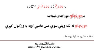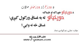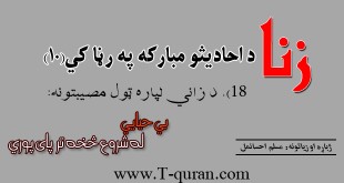 د لقمان حکیم نصیحت لقمان حکیم خپل زوی ته په نصیحت کي وویل چي: اې زویه! د زنا څخه ځان وساته ځکه ددې شروع په وېره سره وي او پای یې په شرمندګۍ سره، او ددې کار سرته رسوونکی د دوږخ یوې کندي ته ځي. همدا ډول د نبي کریم …