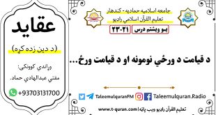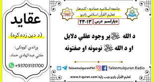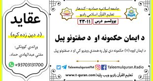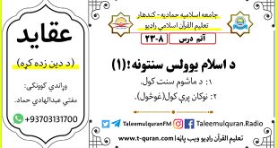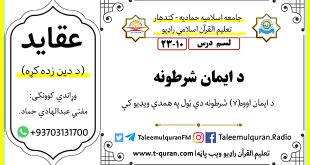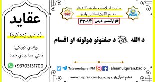 د دین زده کړې لړۍ(عقاید) شلم درس: وړاندي کوونکی: الحاج مفتي عبدالهادي حماد د شلم درس ویډیویي بڼه:
