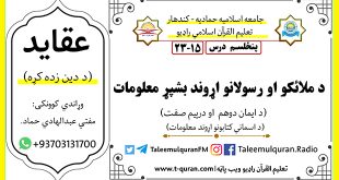 د دین زده کړې لړۍ(عقاید) پنځلسم درس: وړاندي کوونکی: الحاج مفتي عبدالهادي حماد د پنځلسم درس ویډیویي بڼه: