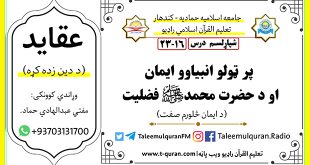 د دین زده کړې لړۍ(عقاید) شپاړلسم درس: وړاندي کوونکی: الحاج مفتي عبدالهادي حماد د شپاړلسم درس ویډیويي بڼه: