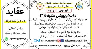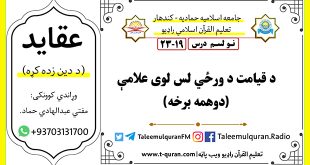 د دین زده کړې لړۍ(عقاید) نولسم درس: وړاندي کوونکی: الحاج مفتي عبدالهادي حماد د نولسم درس ویډیویي بڼه:
