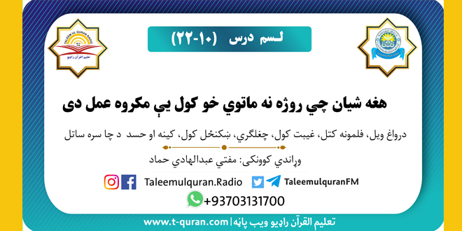 نور لوستلد ایمان حکمونه او د صفتونو پیل|۱۱-۲۳|