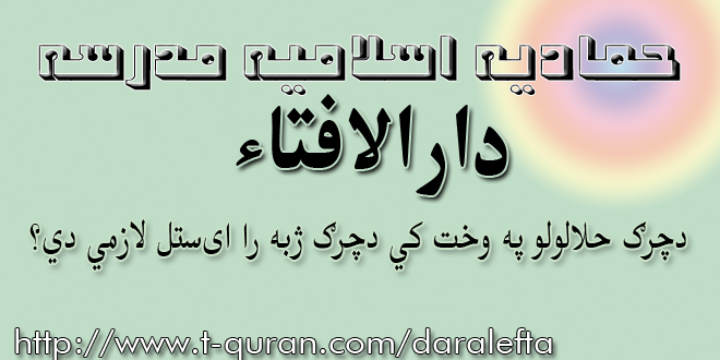 که تاسو هم کومه شرعي پوښتنه لري د دارالافتاء له لارې یی شریکوالای سئ