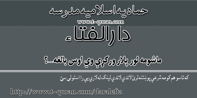 مخپاڼه / ستاسو شرعی پوښتنی او جوابونه / ماشومه لور پلار ورکړې وي اوس بالغه…؟