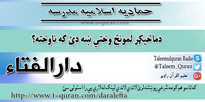 جواب ويونکی: مفتي عبدالهادي حماد. ستاسو د شرعي پوښتنو جوابونه کوم چي مو د حمادیه …