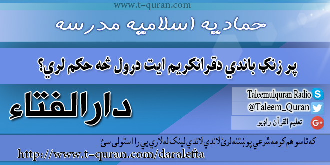 جواب ويونکی: مفتي عبدالهادي حماد. ستاسو د شرعي پوښتنو جوابونه کوم چي مو د حمادیه …