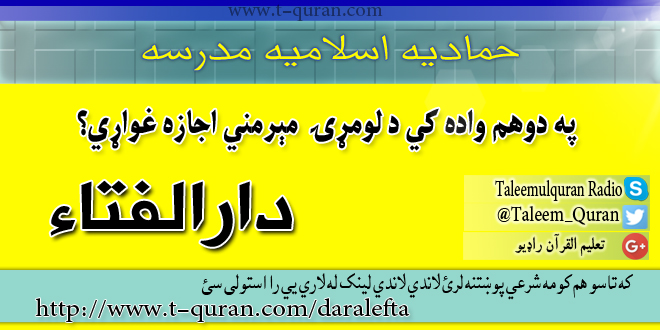 جواب ويونکی: مفتي عبدالهادي حماد. ستاسو د شرعي پوښتنو جوابونه کوم چي مو د حمادیه …