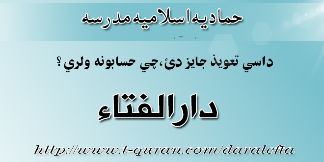جواب ويونکی: مفتي عبدالهادي حماد. ستاسو د شرعي پوښتنو جوابونه کوم چي مو د حمادیه …