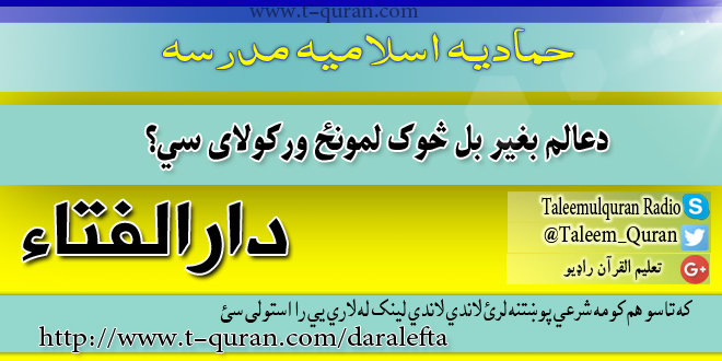 دعالم بغیر بل څوک لمونځ ورکولای سي؟ مارچ 18, 2017 ستاسو شرعی پوښتنی او جوابونه, لمونځ 1,049 لیدنی د راسته کلیک په کولو یې خپل کمپیوټر کښې ثبتولای سی. شریکول Facebook Google +