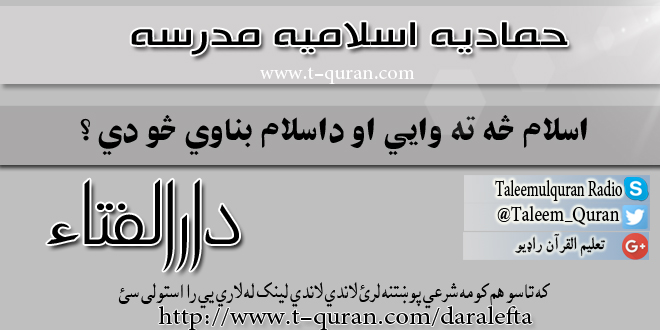 جواب ويونکی: مفتي عبدالهادي حماد. ستاسو د شرعي پوښتنو جوابونه کوم چي مو د حمادیه …