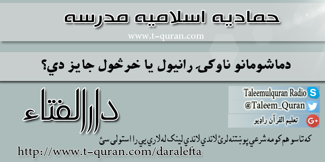 جواب ويونکی: مفتي عبدالهادي حماد. ستاسو د شرعي پوښتنو جوابونه کوم چي مو د حمادیه …
