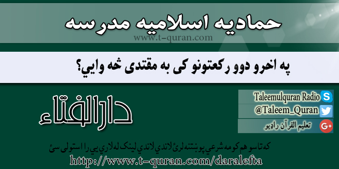 مخپاڼه / ستاسو شرعی پوښتنی او جوابونه / په اخرو دوو رکعتونو کی به مقتدی څه وايي؟