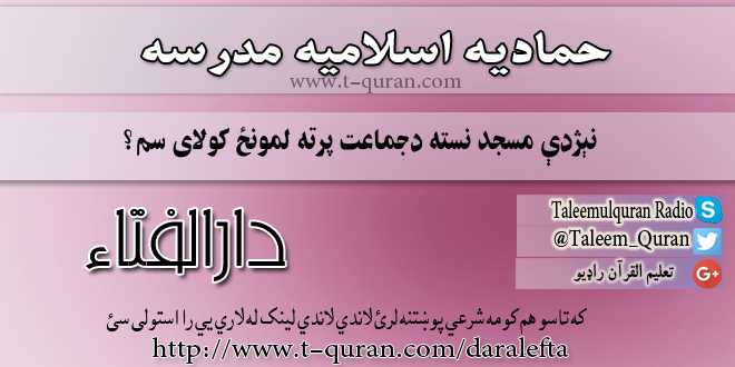 جواب ويونکی: مفتي عبدالهادي حماد. ستاسو د شرعي پوښتنو جوابونه کوم چي مو د حمادیه …