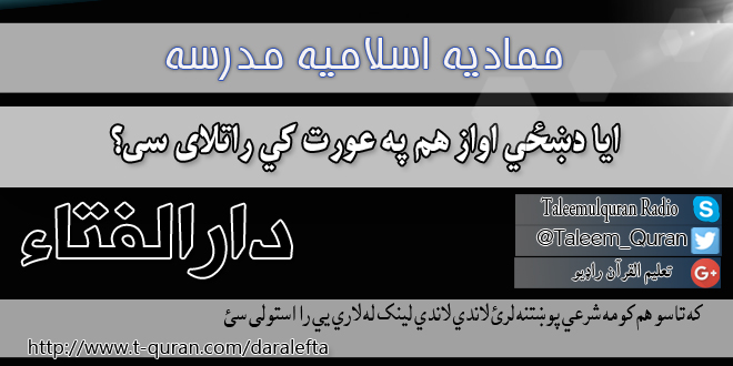 مخپاڼه / ستاسو شرعی پوښتنی او جوابونه / روا او ناروا / ایا دښځي اواز هم په عورت کي راتلای سی؟