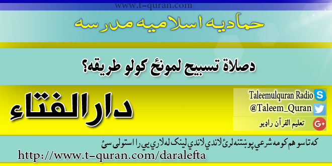 مخپاڼه / ستاسو شرعی پوښتنی او جوابونه / دصلاة تسبیح لمونځ کولو طریقه؟