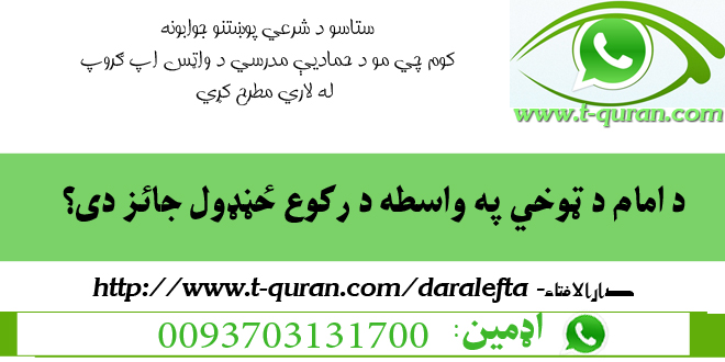 جواب ويونکی: مفتي عبدالهادي حماد. ستاسو د شرعي پوښتنو جوابونه کوم چي مو د حمادیه …
