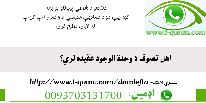 مخپاڼه / ستاسو شرعی پوښتنی او جوابونه / ایمان او عقائد / اهل تصوف د وحدة الوجود عقيده لري؟