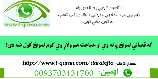 جواب ويونکی: مفتي عبدالهادي حماد. ستاسو د شرعي پوښتنو جوابونه کوم چي مو د حمادیه …