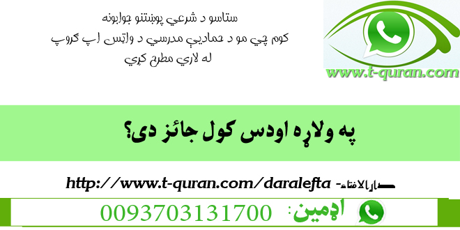 په ولاړه اودس کول جائز دی؟ مسلسله شمېره: ۰۵۲ جواب ویونکی: مفتي عبدالهادي حماد حفظه الله دانلود