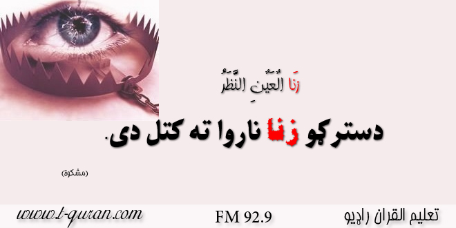 د سترګو زنا: زنَا الٌعَيٌنِ النَّظَرُ ژباړه: دسترګو زنا ناروا ته کتل دی. (مشکوة)