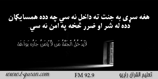 هغه سړی به جنت ته داخل نه شی چه دده همسايګان دده له شر او ضرر نه په امن نه شی.