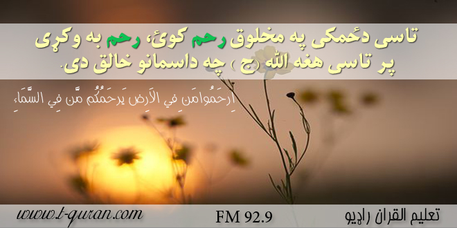 ژباړه: تاسي دځمکي په مخلوق رحم کوئ، رحم به وکړي پر تاسي هغه الله (ج) چه دآسمانو خالق دی.