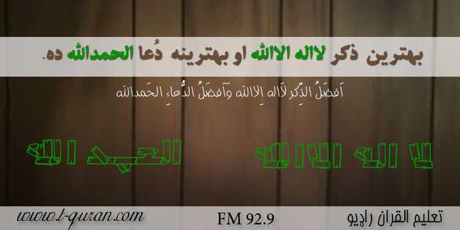 اَفضَلُ الذِّّكر لاَاله اِلاالله وَاَفضَلُ الدُّعآءِ الحَمدالله .ِ(ترمذی).