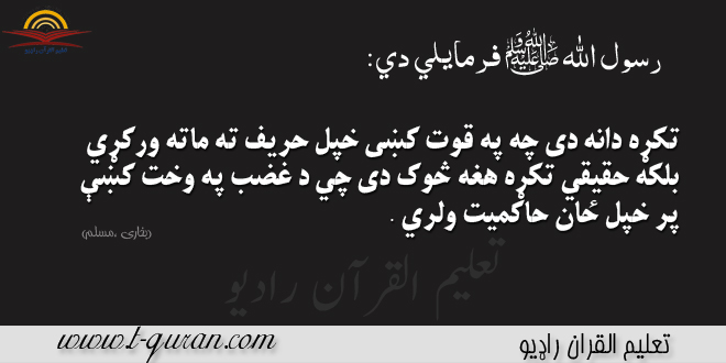 تکړه دانه دی چه په قوت کښی خپل حريف ته ماته ورکړي بلکه حقيقي تکړه هغه څوک دی چي د غضب په وخت کښې پر خپل ځان حاکميت ولري . (بخاری ،مسلم)