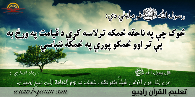 څوک چې په ناحقه ځمکه ترلاسه کړي د قیامت په ورځ به یې تر اوو ځمکو پوري په ځمکه ننباسي.