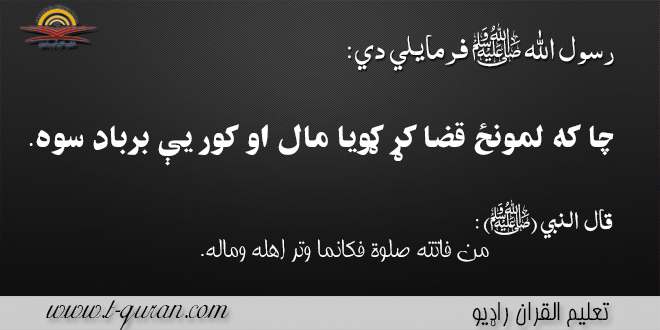 که چالمونځ قضا کړى مال اوعيال يې تباه سو