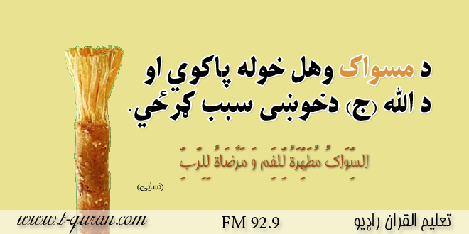 ژباړه: دمسواک وهل خوله پاکوی او دالله (ج) دخوښی سبب ګرځي. (نسايی)