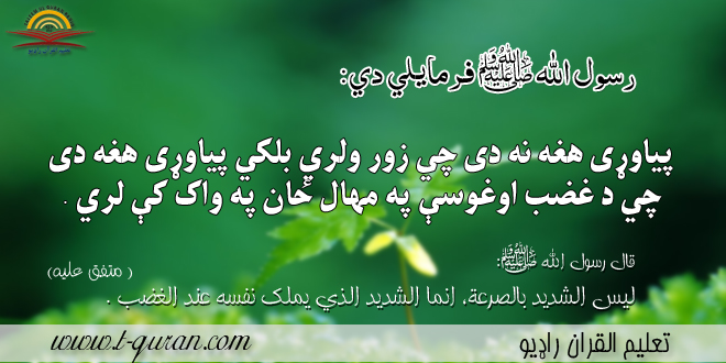پیاوړی هغه نه دی چي زور ولري بلکي پیاوړی هغه دی چې د غضب اوغوسې په مهال ځان په واک کې لري .